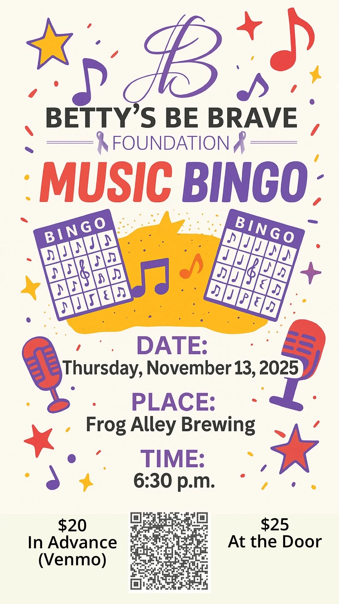 Join us for music bingo with DJ Mikey C to support Betty’s Be Brave Foundation!